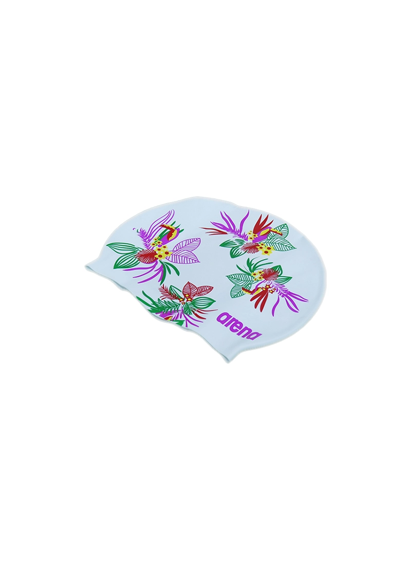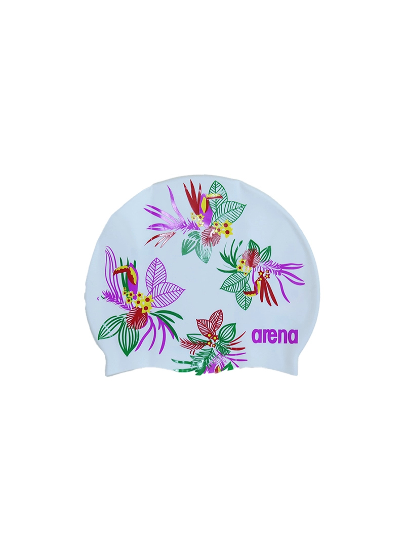 Arena Swimming Cap Silicone Tropical Flower — White